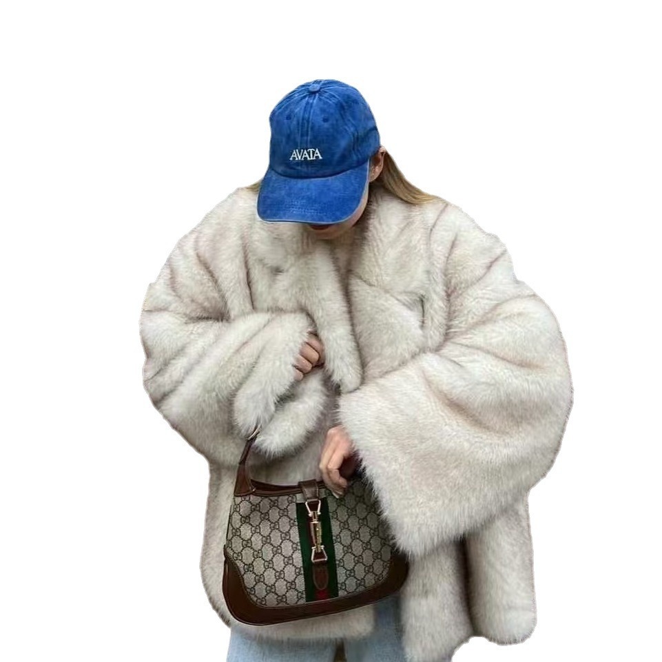 New Thickened Autumn And Winter Fluffy Dyed Tip Fox Fur Loose Overcoat
