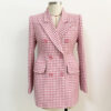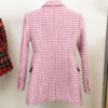 Pink Houndstooth Wool Coat Retro Double-breasted