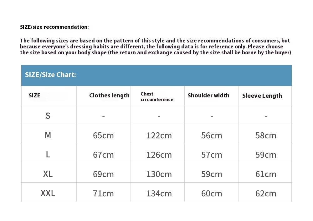 Size: M,L,XL,XXL