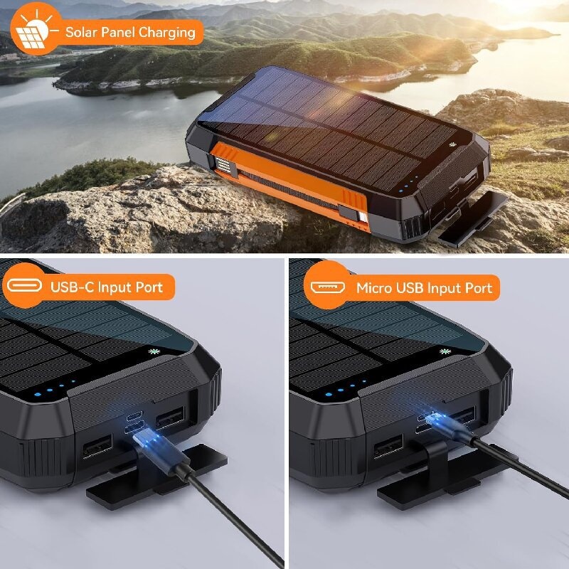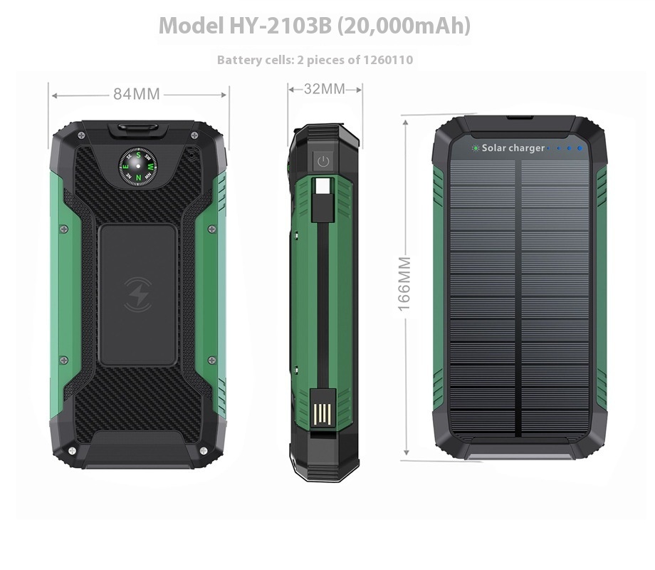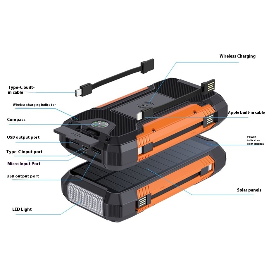 With Cable Solar Charging Unit 20000mah Portable Wireless Charger Mobile Phone Power Bank