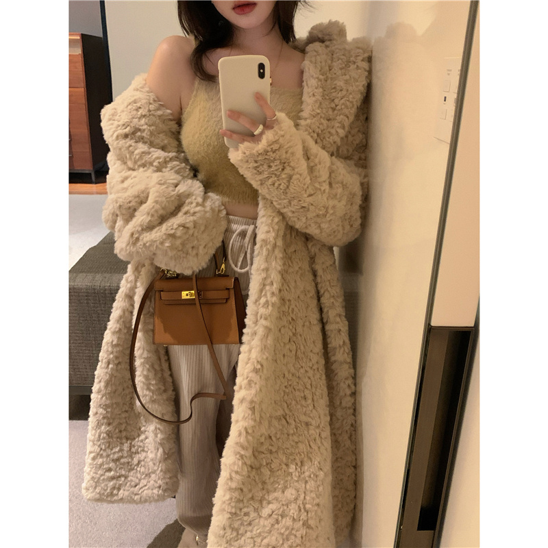 Women's Autumn And Winter Furry Thickened Long Sleeve Cardigan Coat