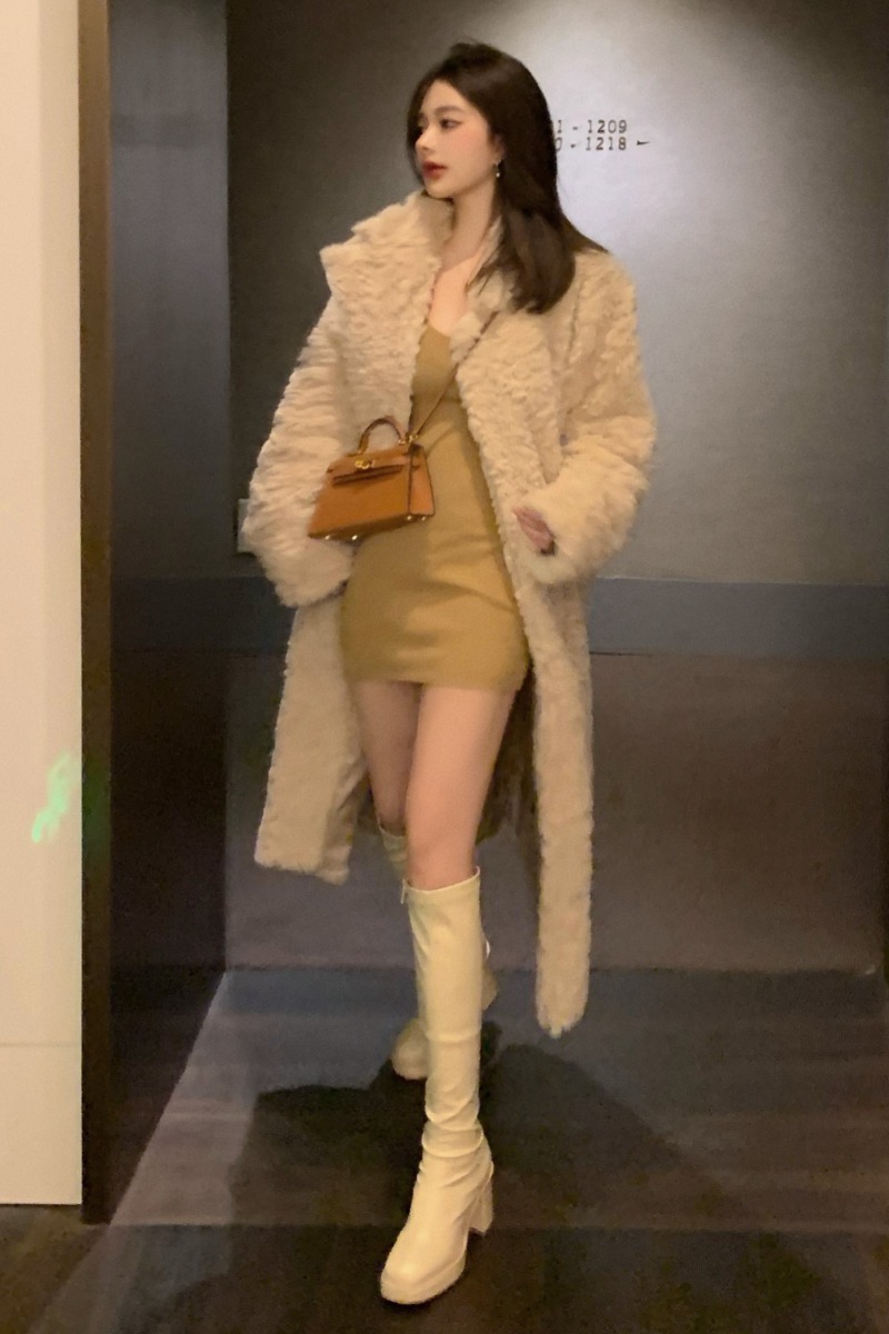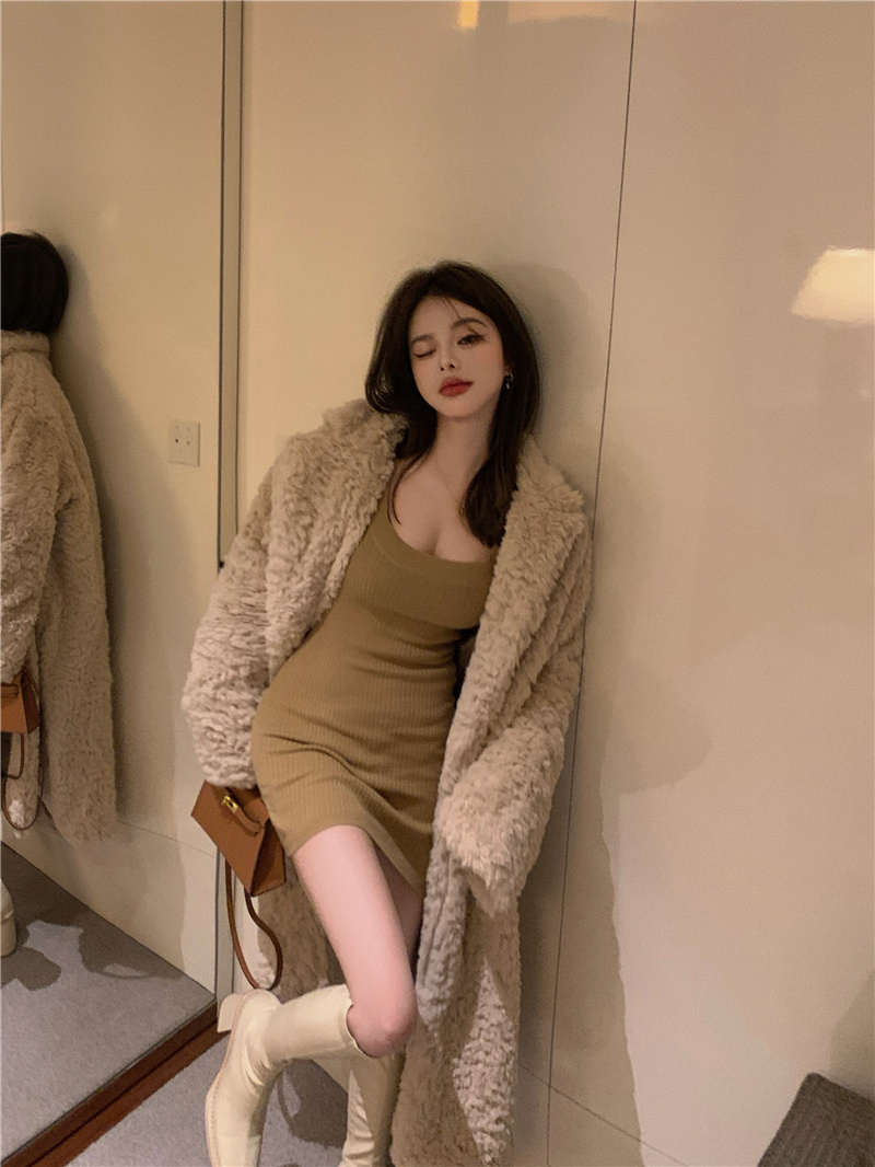 Color classification: Knitted bottoming skirt, fur coat