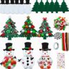 6 x Felt Snowman 6 x Felt Christmas Tree A bundle of fur strips A bag of fluffy balls 1 brick and stone sticker sticker 1 double-sided adhesive tape 1 pack of eyes