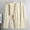3pcs Suits Women Fashion Knitting Sleeveless Vest Sweater Long Cardigan And Wide-leg Pants Three-piece Set