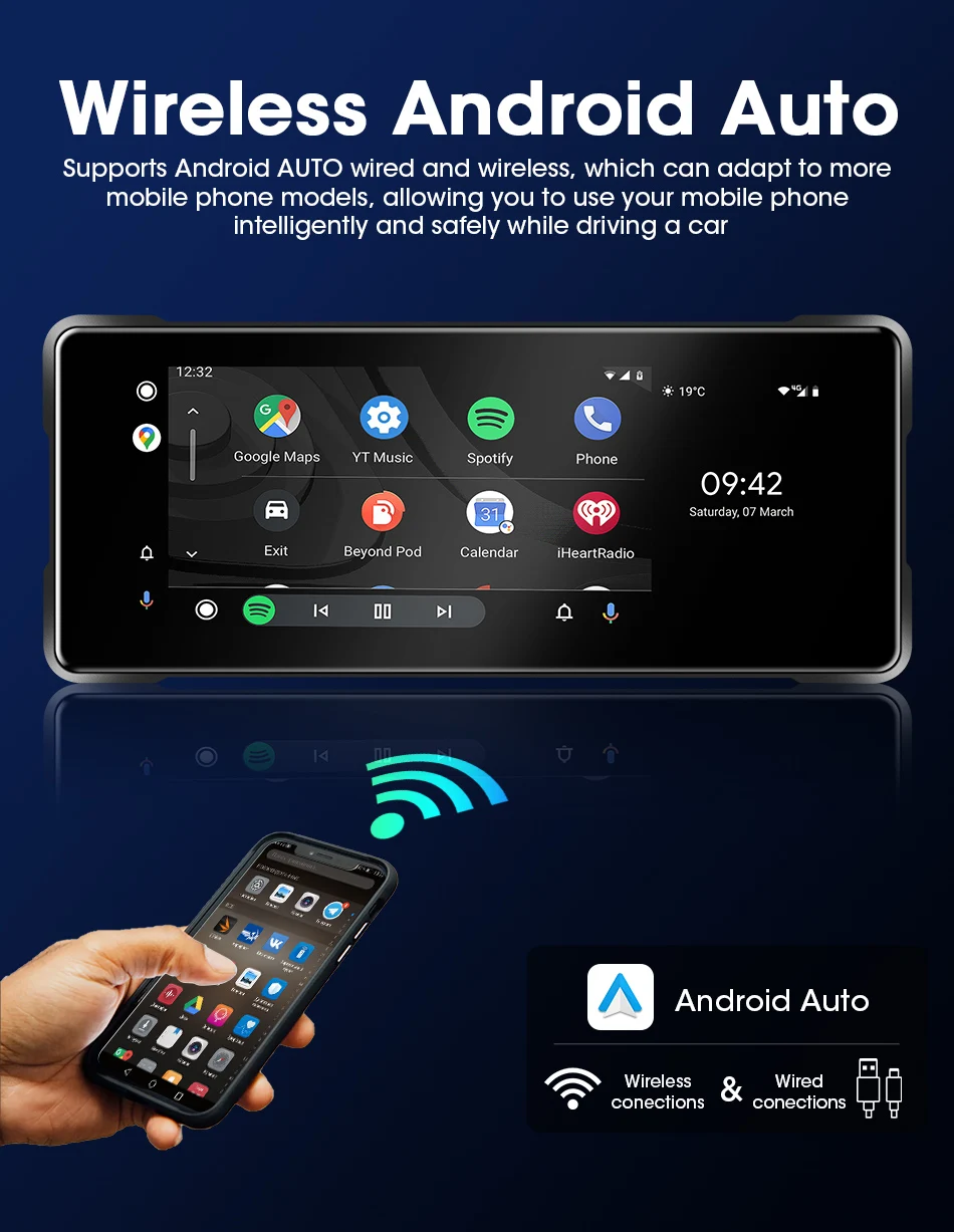 Supports Bluetooth, A2DP, Bluetooth V5.0: Implementing Bluetooth connection to play mobile music; Display multimedia ID3 information: Listen to the sound through Bluetooth earphones. Mobile Internet: Using wireless transmission mirroring technology for mobile data, all mobile apps can be synchronized to PND and displayed synchronously, from small screen to large screen.