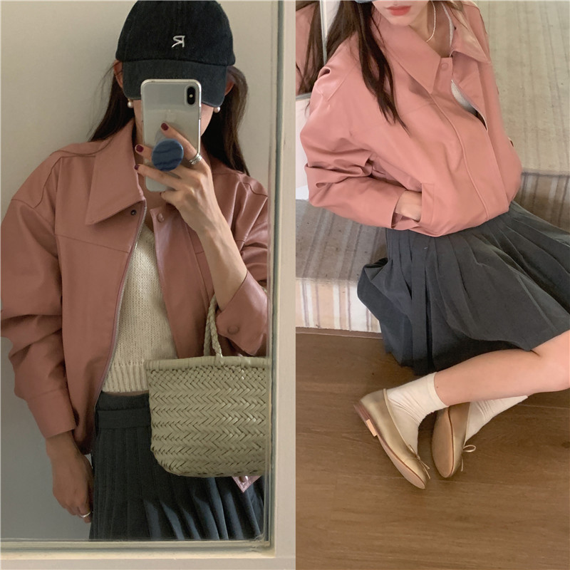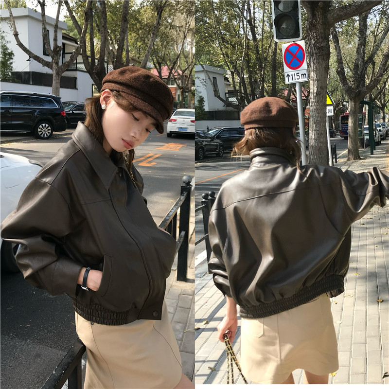 Be the first to review “American Retro Lapels Cropped Leather Coat Female Sweet Cool Handsome”