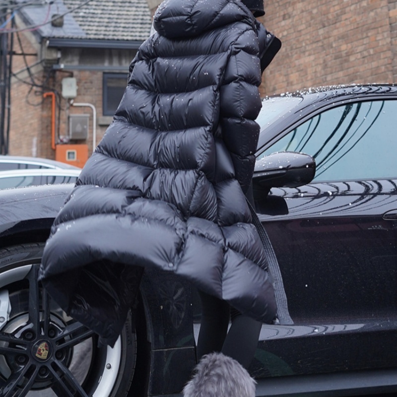 Bakery Long Hooded White Duck Down Couple Winter Coat Women