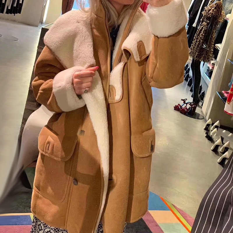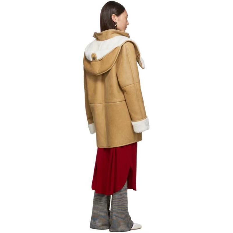 Camel fur cute bear hooded zipper long coat