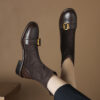 Casual Low Heel Martin Boots Belt Buckle Stitching Short Boots