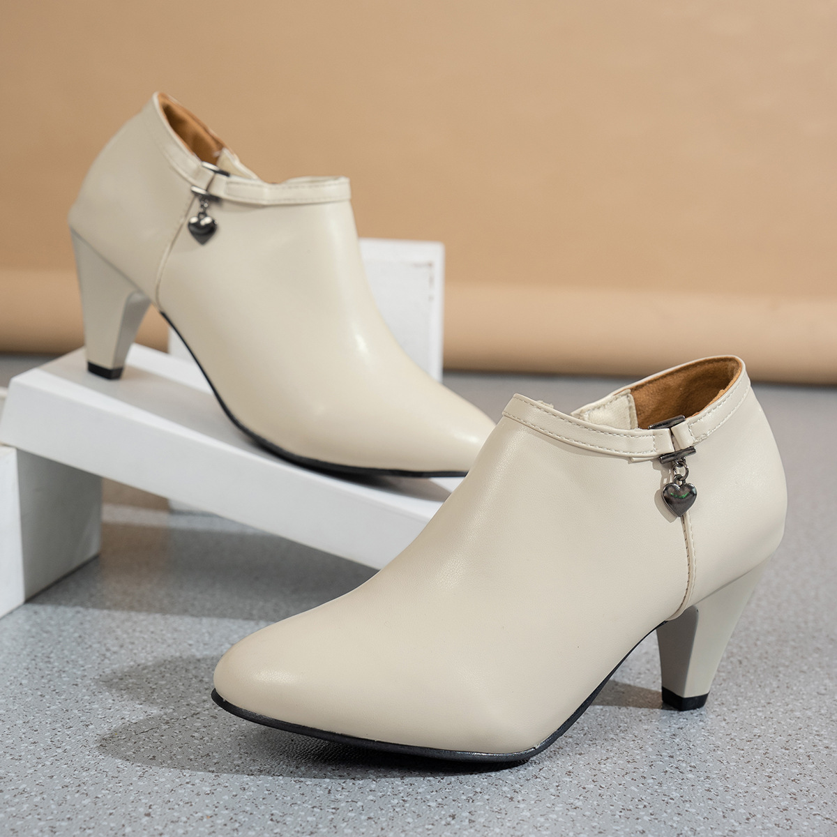 Be the first to review “Casual Pointed Toe Stiletto Heel Ankle Love Decoration Solid Color Ankle Boots”