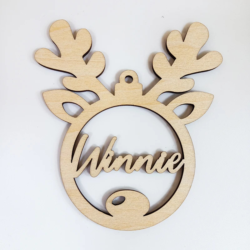 Christmas Tree Holiday Creative Personality Wooden Pendant Snowflake Carving Name Cartoon Cutout