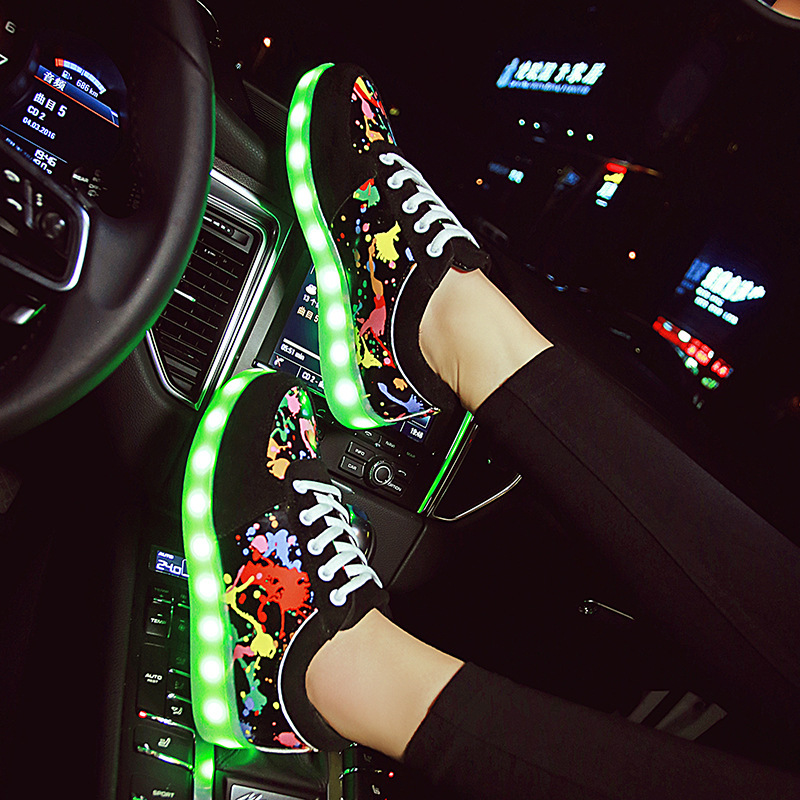 Couple Graffiti Low-cut Light Shoes USB Charging LED Lights Colorful Luminous Shoes