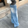 Crease design washed and bleached jeans for women straight loose floor-length pear-shaped wide-leg trousers