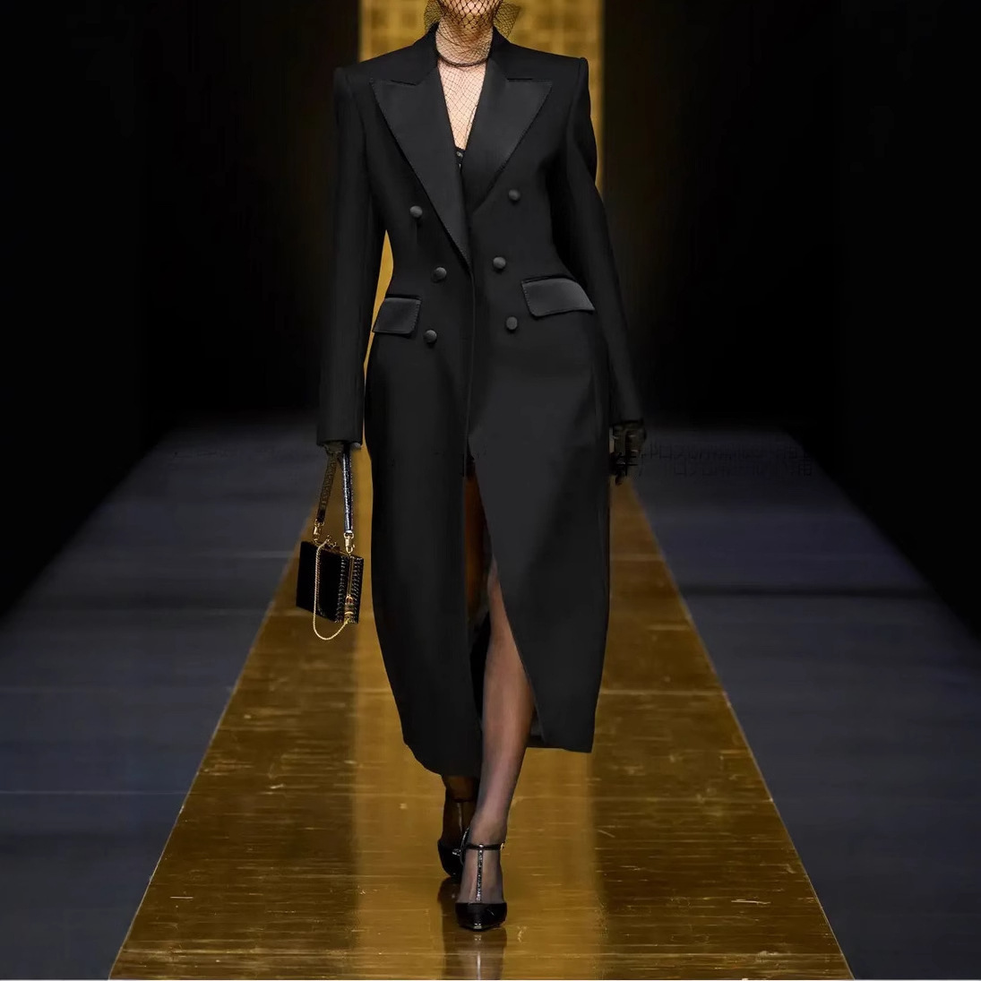 Double Breasted Slim Waist Long Slit Suit Skirt