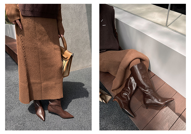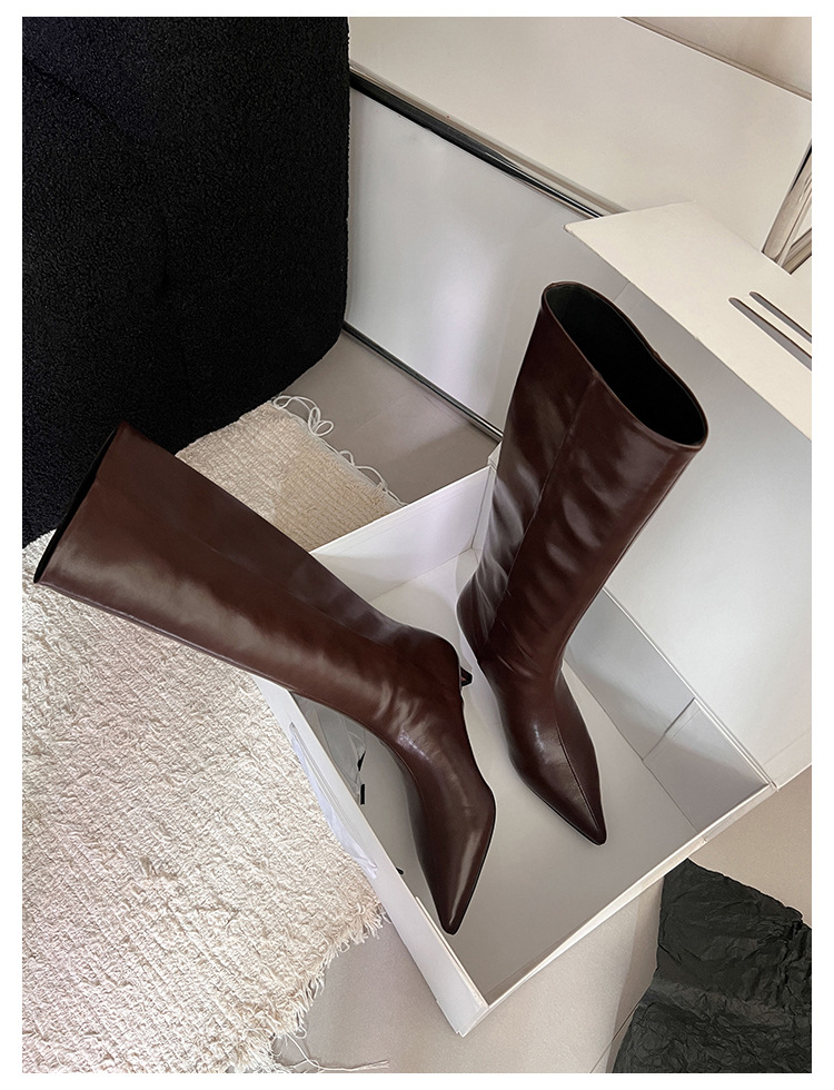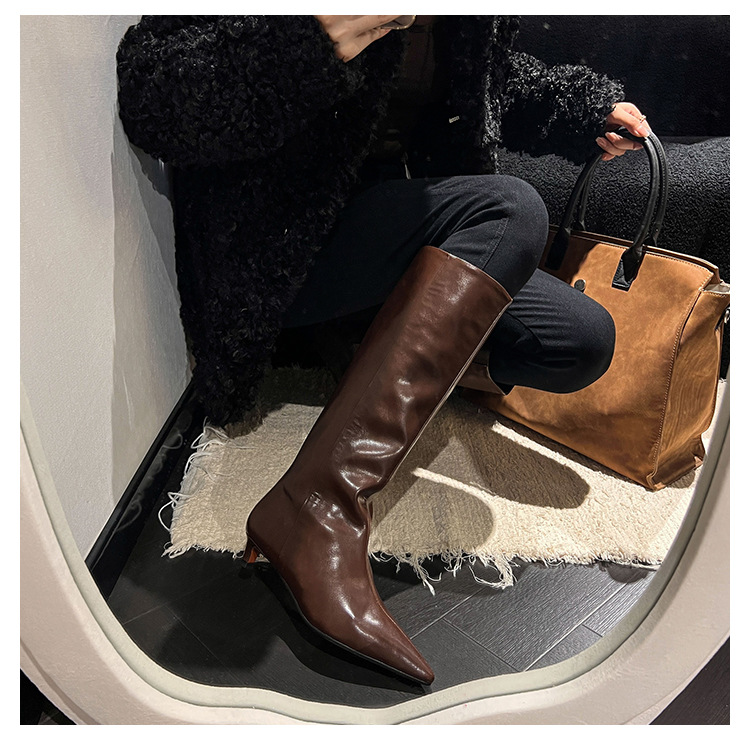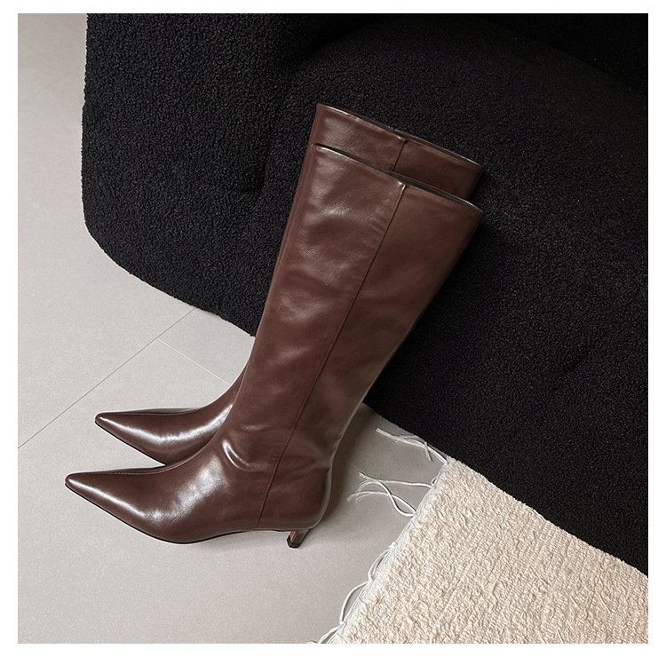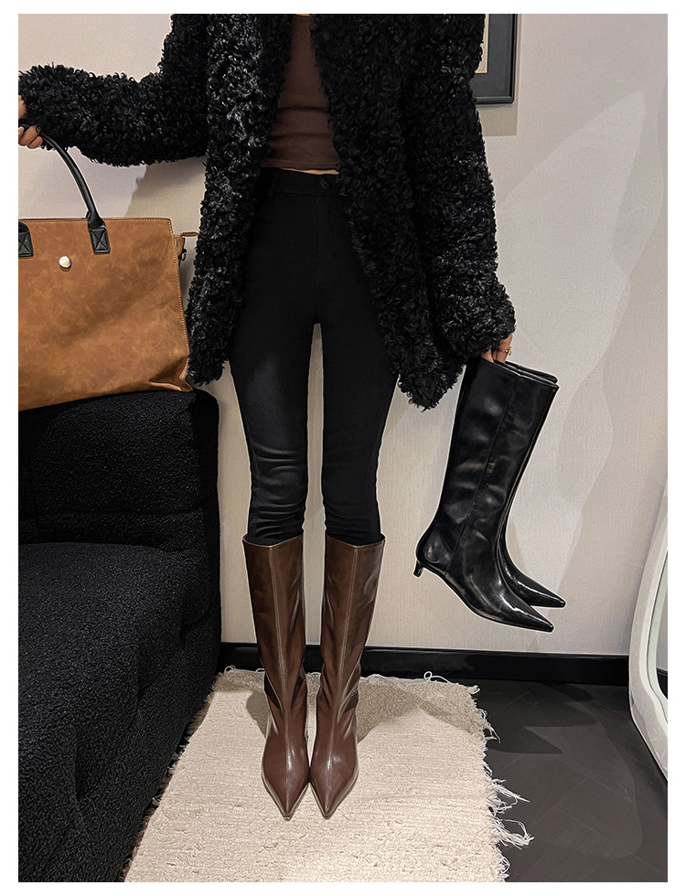 Elastic Commuter Pointed High Heel Brown Knight Boots