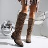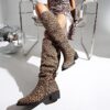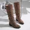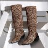 Fashion Square Toe Chunky Heel High Heel Leopard Print Boots
