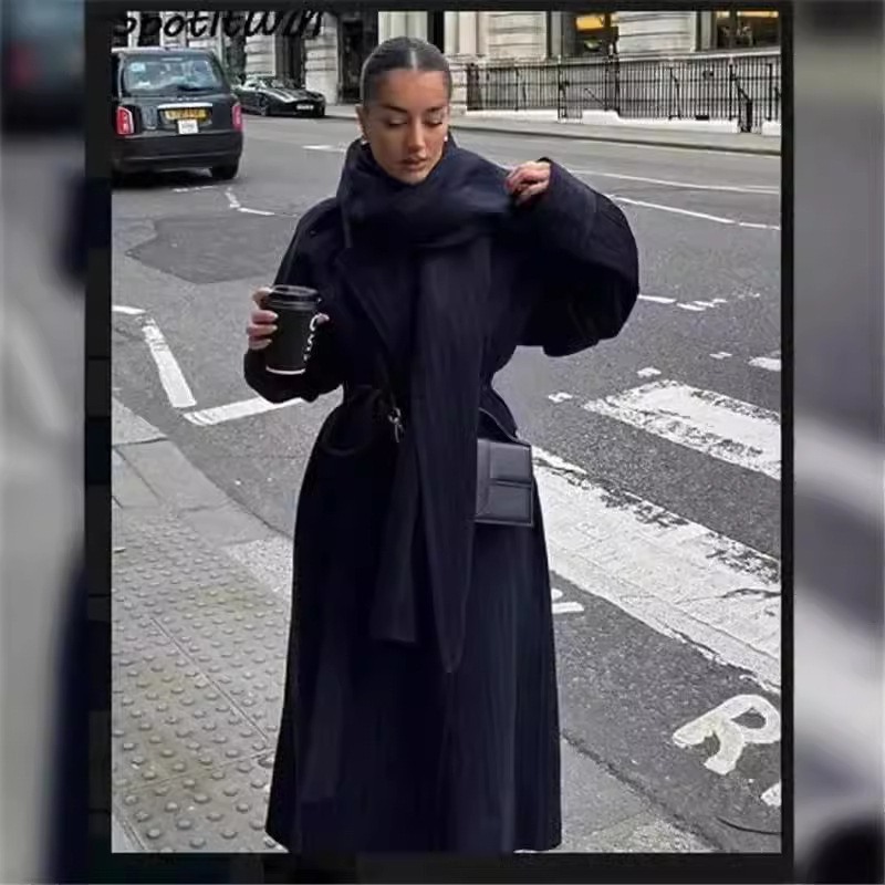 Fashion Women’s Mid-length Trench Coat With Scarf