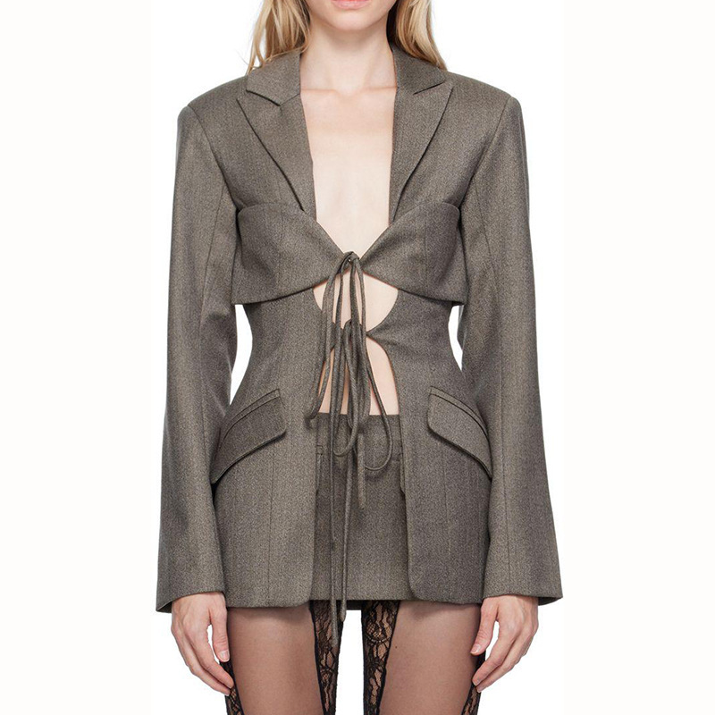 Fashionable V-shaped Hollow-out Cinched Irregular Blazer