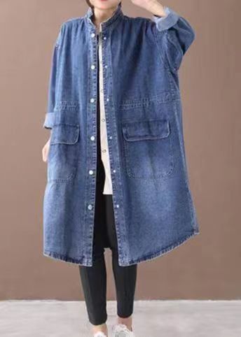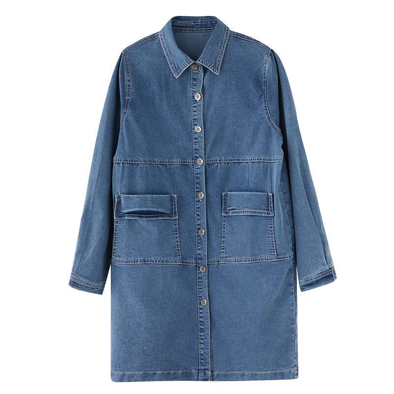 Fashionable Versatile Slimming Denim Shirt Dress Korean Style Elegant Hong Kong Style Vintage Single-breasted Coat