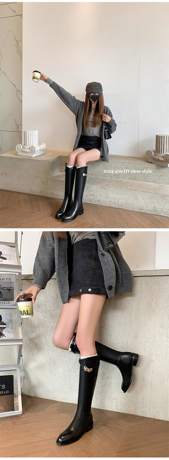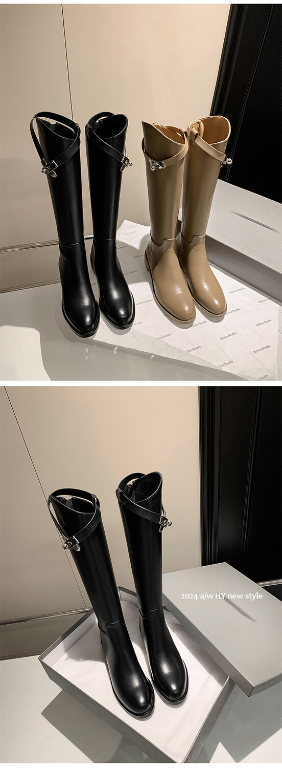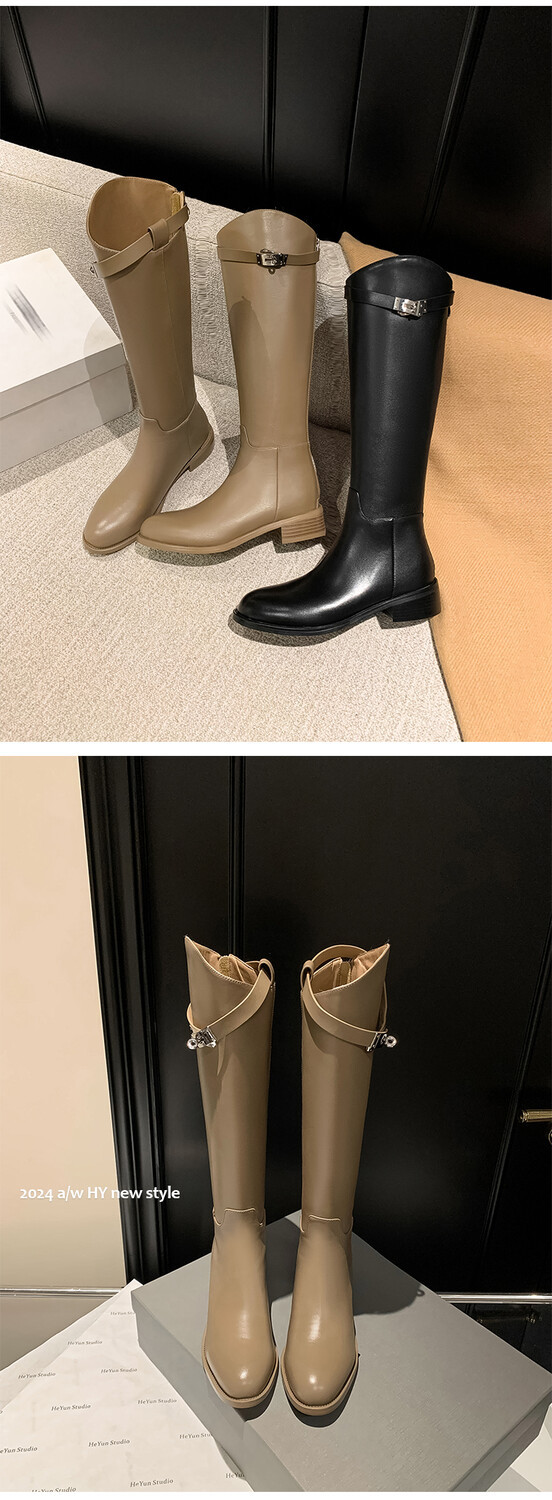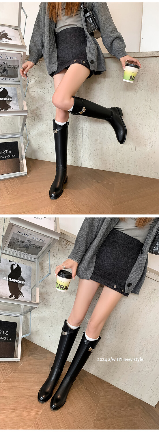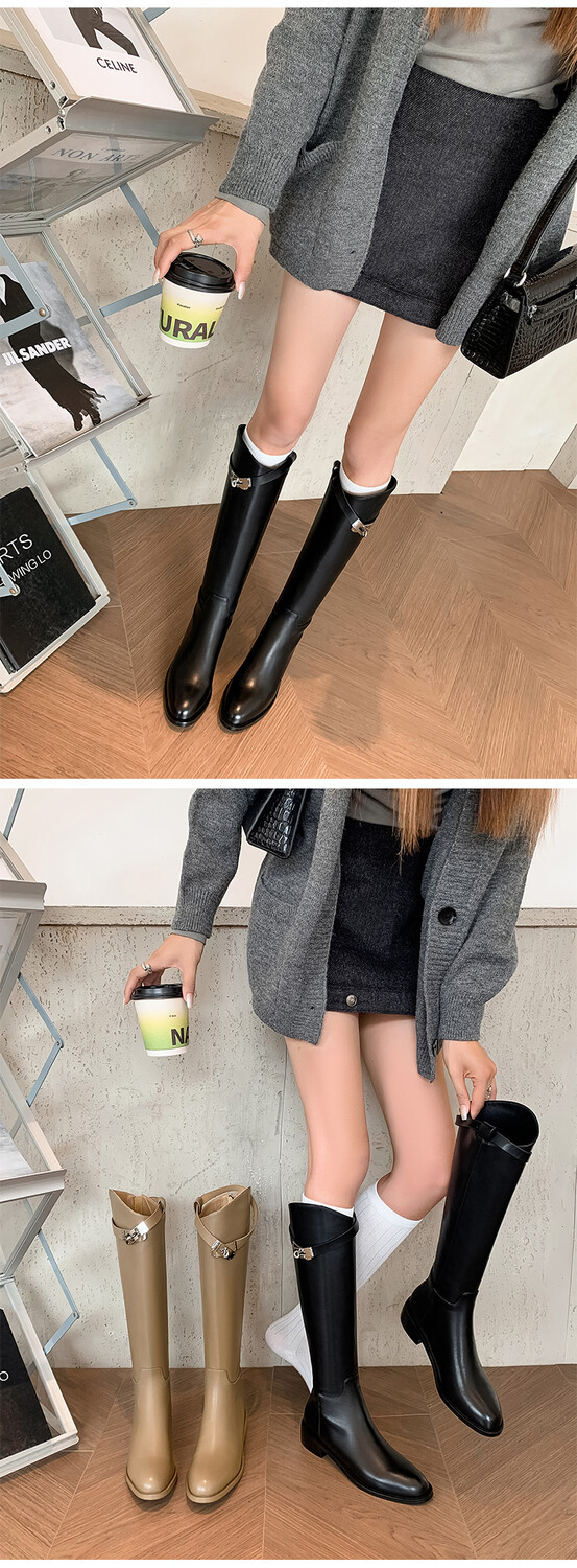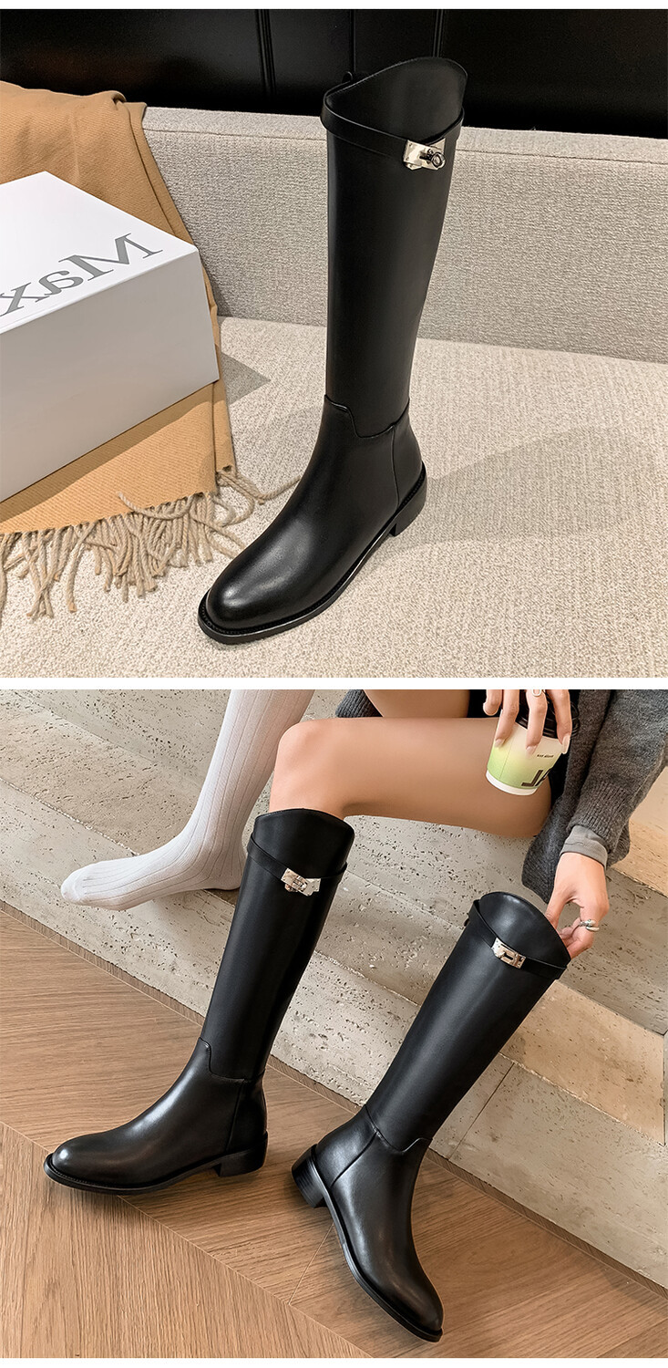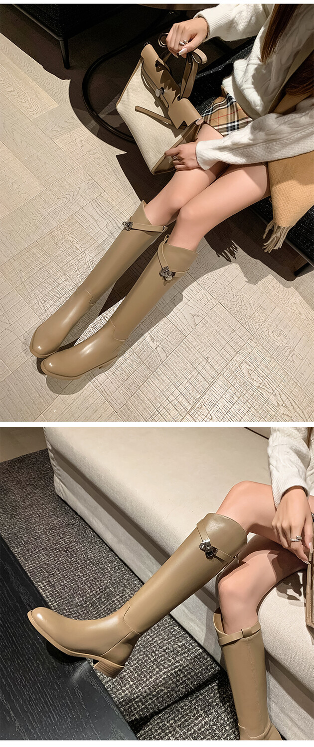 Be the first to review “First Layer Cowhide Lock Knight Boots Big Tube Circumference Genuine Leather Below The Knee High Boots”