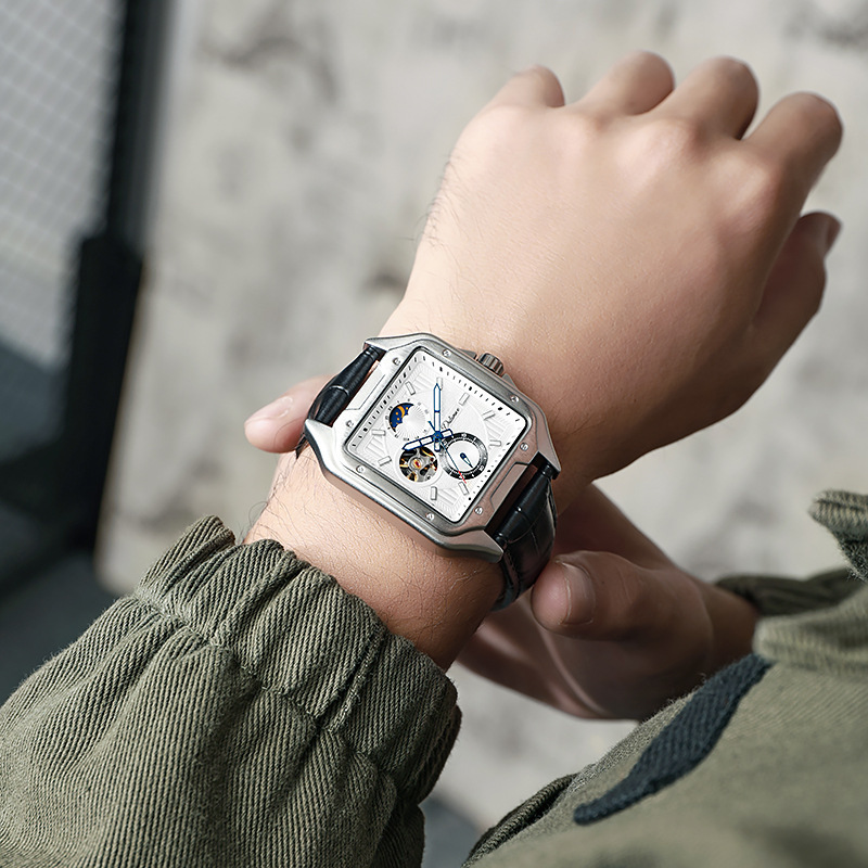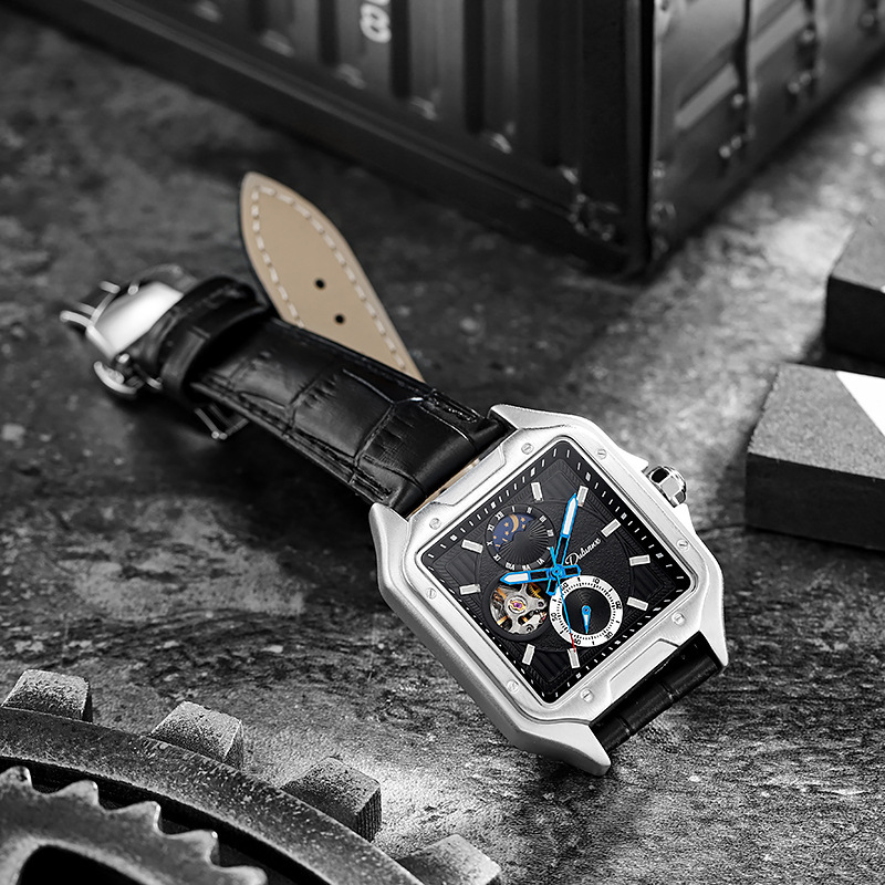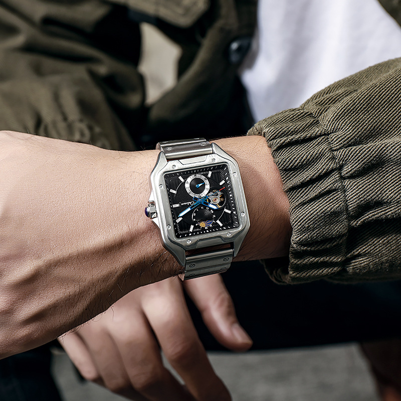 Flywheel Waterproof Hollow Out Trendy Men’s Square Automatic Mechanical Watch