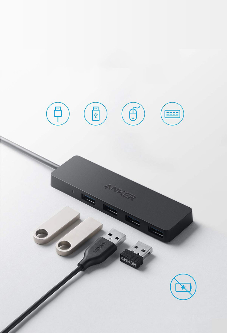 Parameter specs Product Name: Anker 4-port USB3.0 high speed splitter Product size: 30×107 mm Data line length: 200 mm Product color: Black Number of interfaces: 4 Interface type: USB3.0