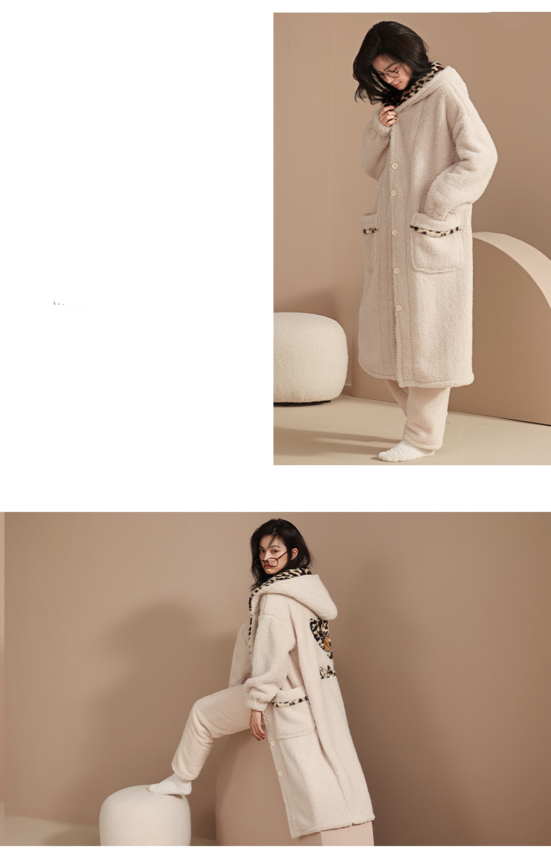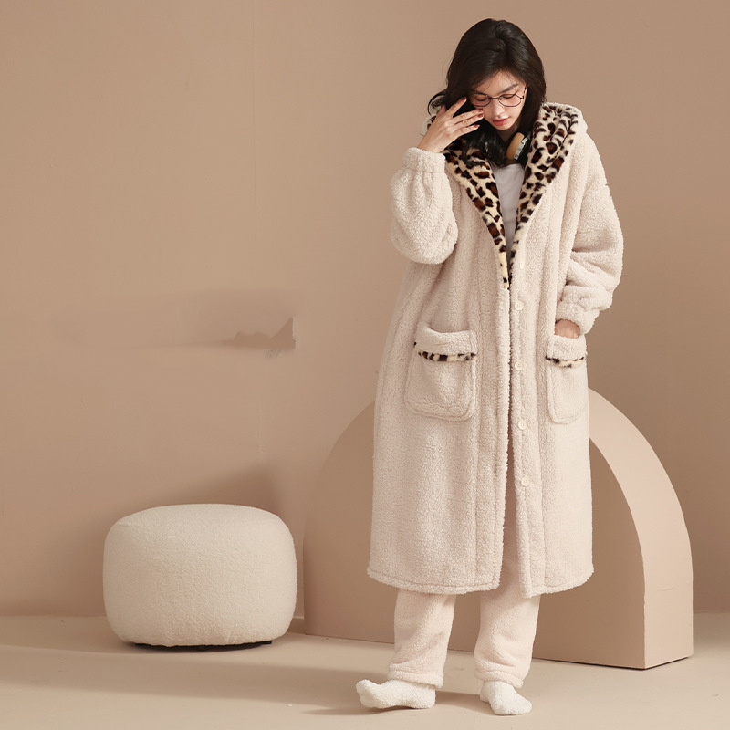 Korean Hooded Warm Female Long Robe Pajamas Plus Velvet