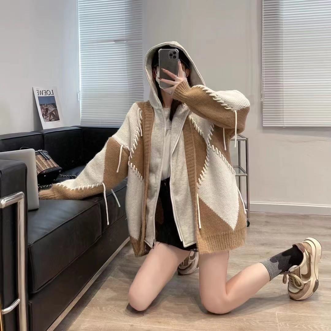 Ladies Sweater Stitching Sweater Jacket Women Autumn And Winter
