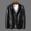 Smooth leather, Soft-touch finish.unique design, Studded lapels, Classic Collar, Buttoned fastening, Stitched quilted sleeves, Functional pockets