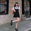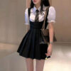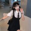 Color: white shirt + pleated skirt + tie [three-piece set]]