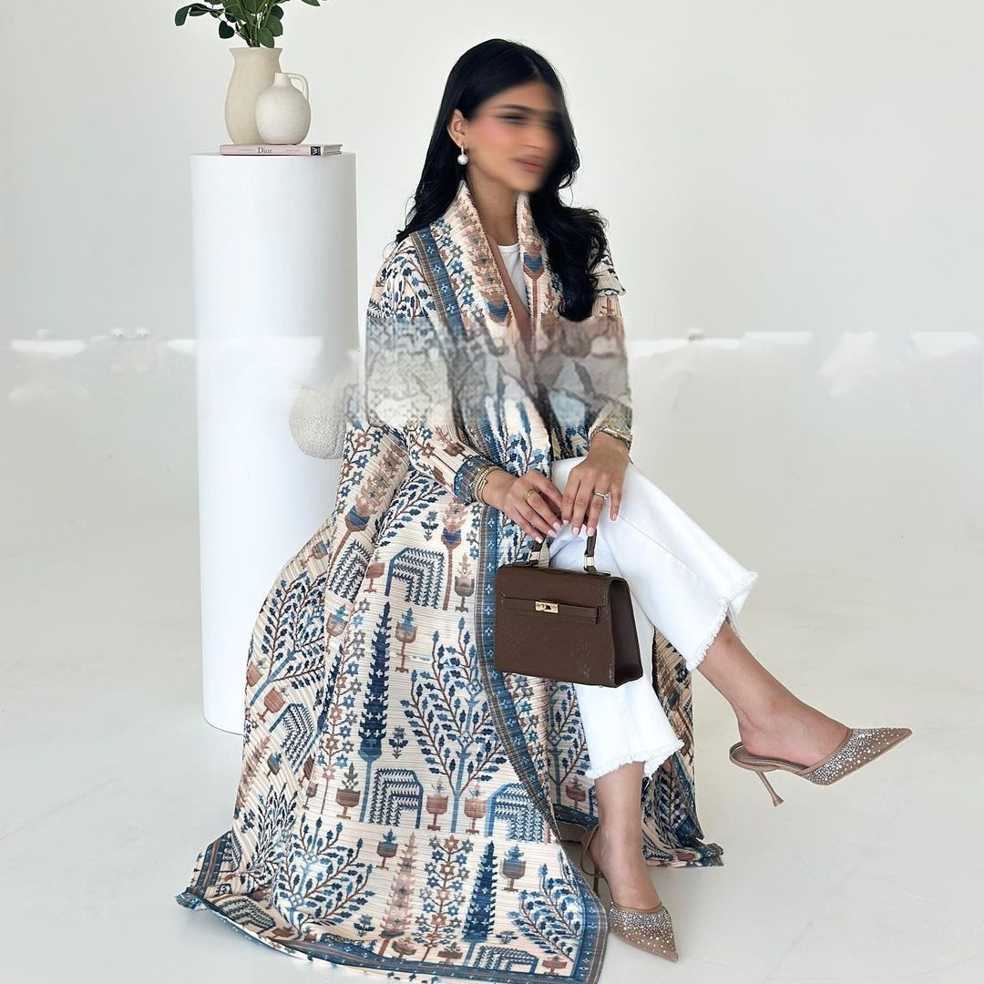 Pleated Trench Djellaba Hot-selling Printed Shawl Cardigan Ethnic Style Cloak Coat