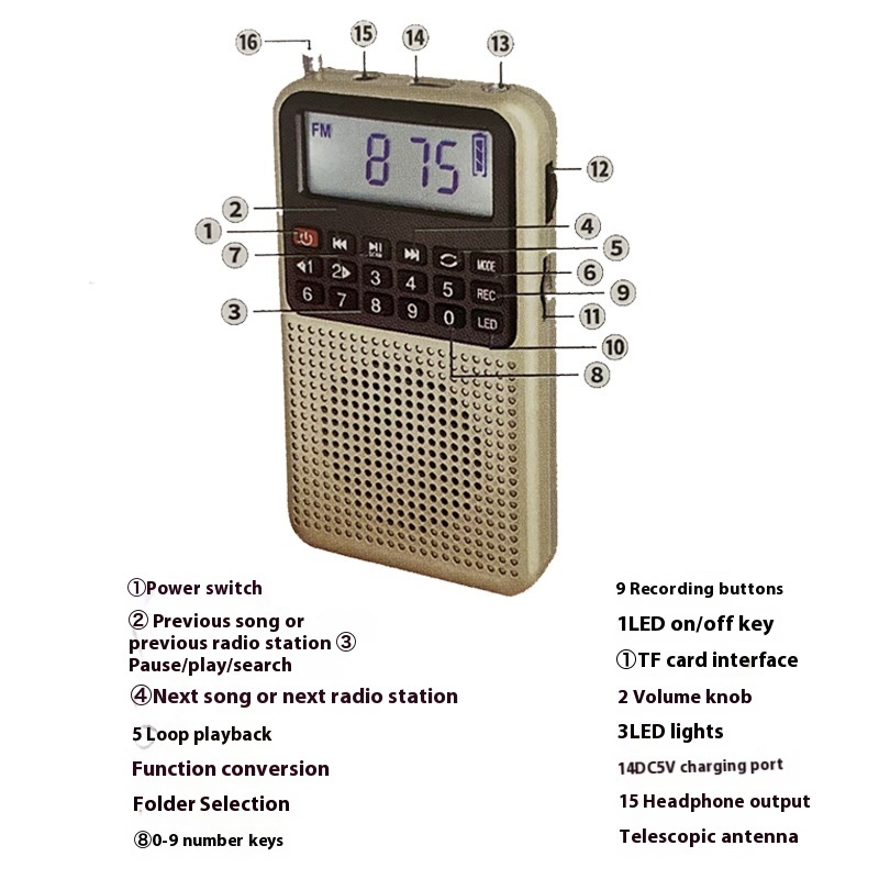 Radio Small FM High Sound Quality Multi-function Charging Bluetooth Subwoofer Large Function Card-type Storytelling Machine