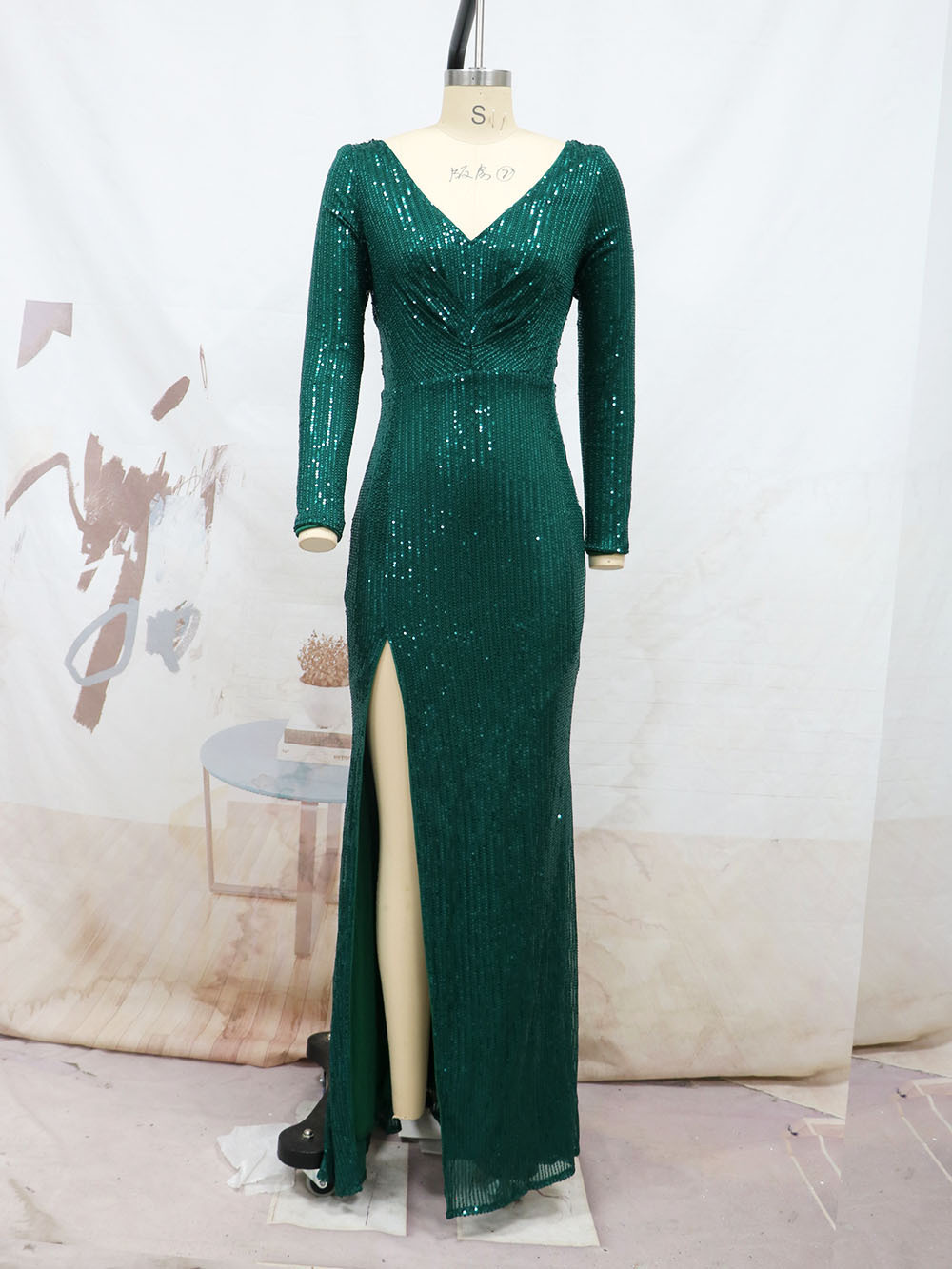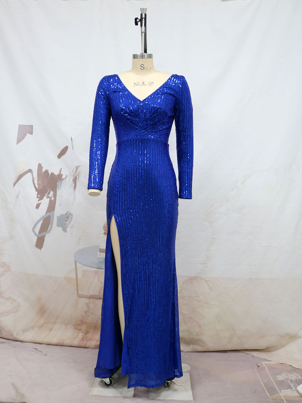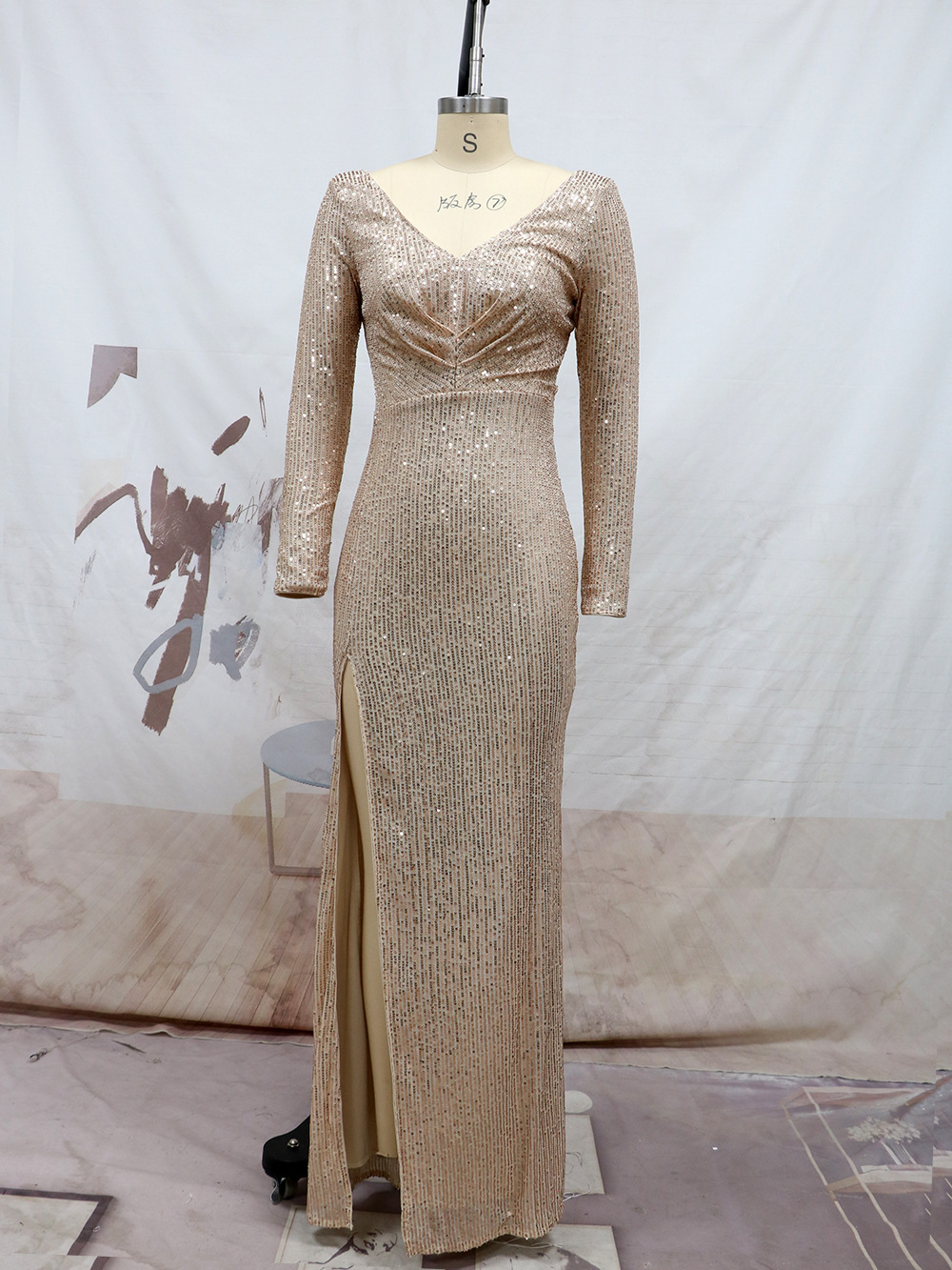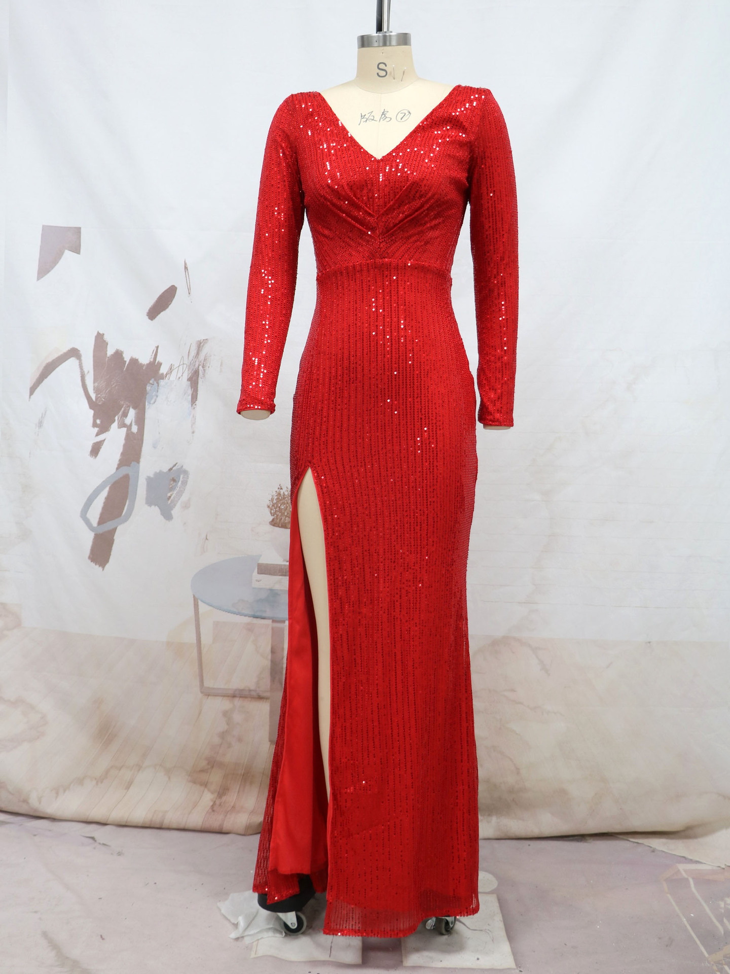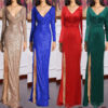 6 reviews for Slit Long Sleeve V Neck Slim Long Dress