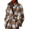 Be the first to review “Women’s Contrast Color Plaid Coat Waist-tied Coat”