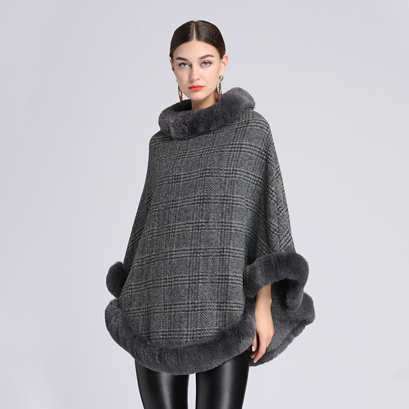 Women's Imitation Rabbit Fur Collar Shawl Cape Loose Pullover