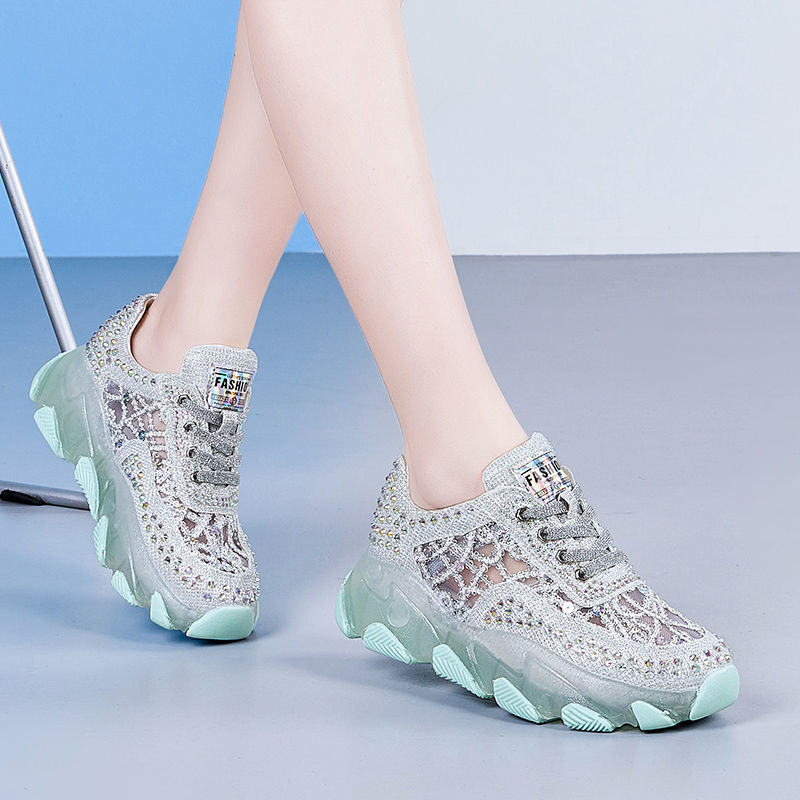 Women's Mesh Surface Hollowed Height Increasing Insole Breathable Sneakers